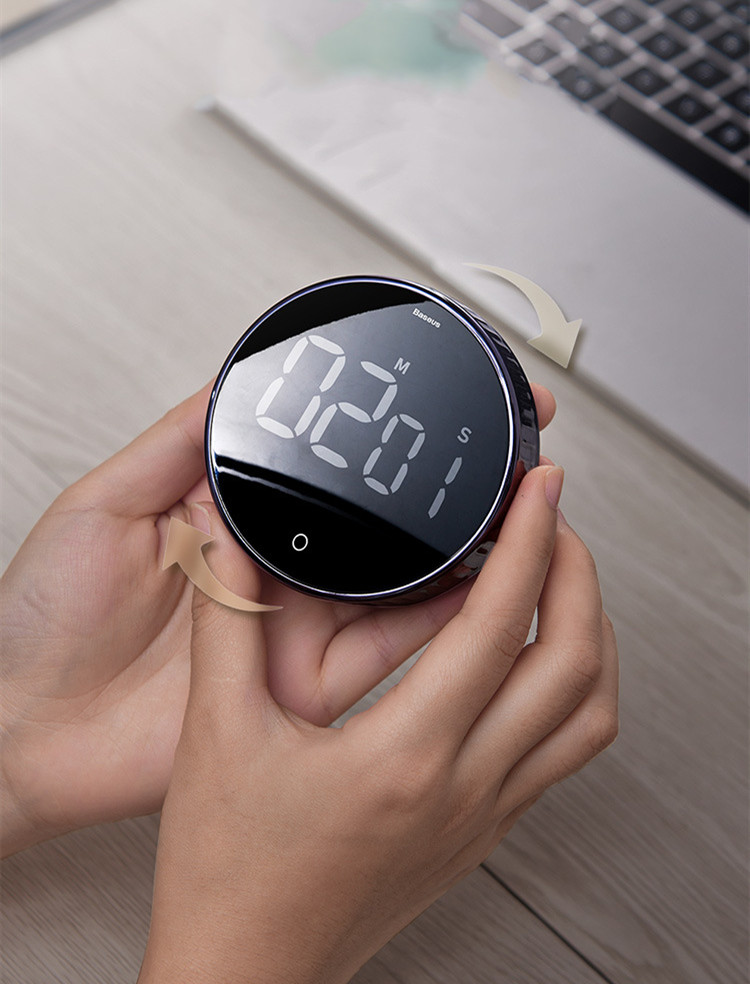 倍思黑耀旋转倒计时器. This innovative electronic timer is designed to simplify your cooking and fitness routines while adding a touch of style to your space.